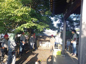 塚越観音堂に集合し岩間会長の挨拶があり、清掃にかかります。ここで愛宕山班は、これから出発になります
